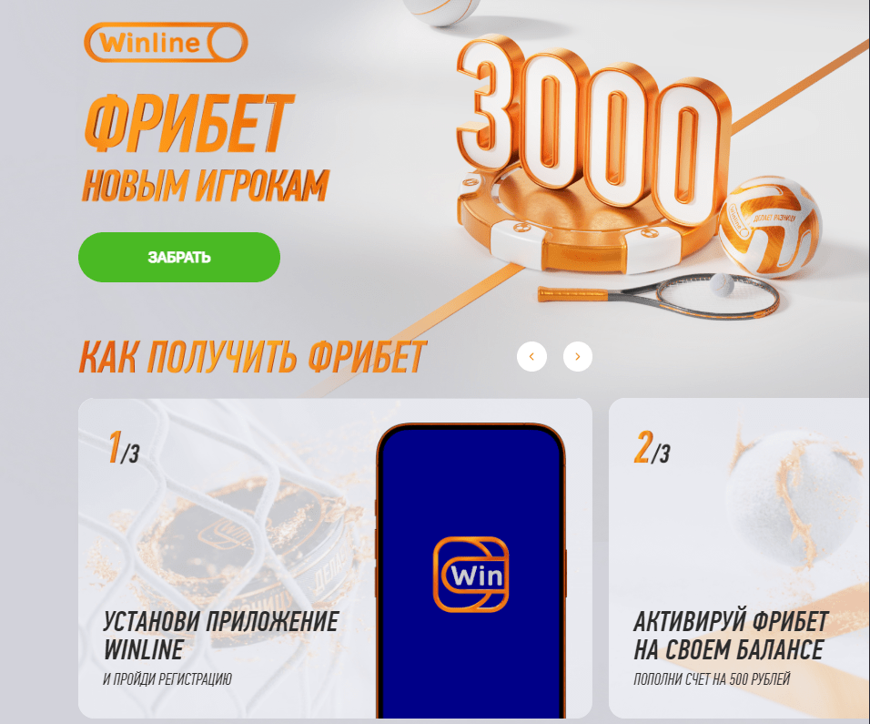 Winline: фрибет высшей пробы 3000 рублей в приложении