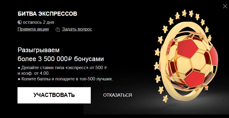 После авторизации в личном кабинете вам будет доступна акция «Битва экспрессов». Нужно нажать кнопку «Участвовать».