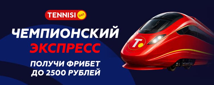 Букмекер «Тенниси» проводит акцию «Чемпионский экспресс». Игроки, собравшие экспрессы на акционные матчи, получают фрибеты стоимостью 500 и 2500 рублей.