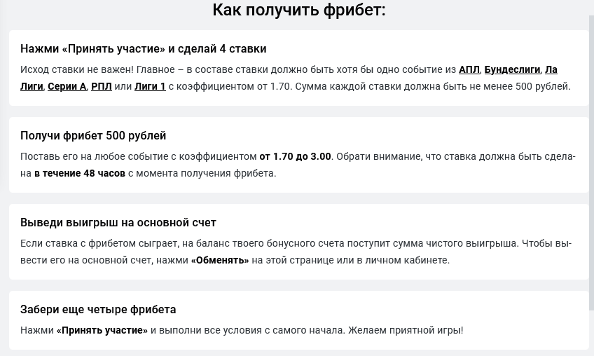 - Возможность получить до 5 фрибетов за время действия акции.