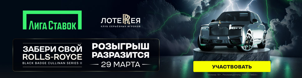 Букмекерская компания «Лига ставок» проводит акцию «ЛотеRRея Cullinan». Участники делают ставки и получают за них билеты. Победители разделят призовой фонд в 48 млн рублей. Главный приз финального розыгрыша – автомобиль ROLLS-ROYCE CULLINAN.
