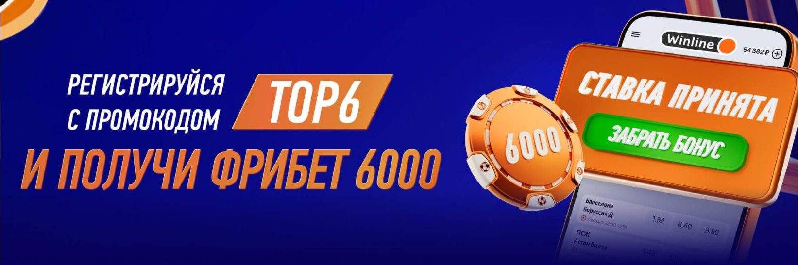 Winline: приветственный фрибет 6000 рублей по промокоду