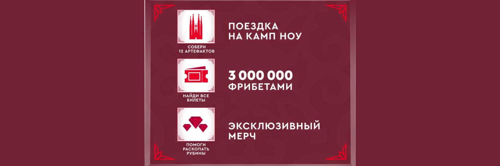 Букмекер «Фонбет» проводит акцию «Сокровища каталонии» для всех пользователей. Пользователям нужно принять участие в диджитал-игре. Среди клиентов букмекера будет разыграна поездка на стадион «Камп Ноу», а также призы и 3 млн рублей фрибетами.
