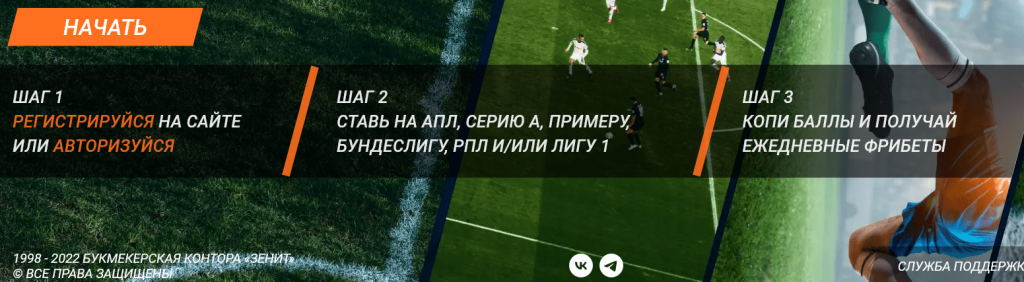 Чтобы получить право на бесплатные пари у букмекера «Зенит», нужно: