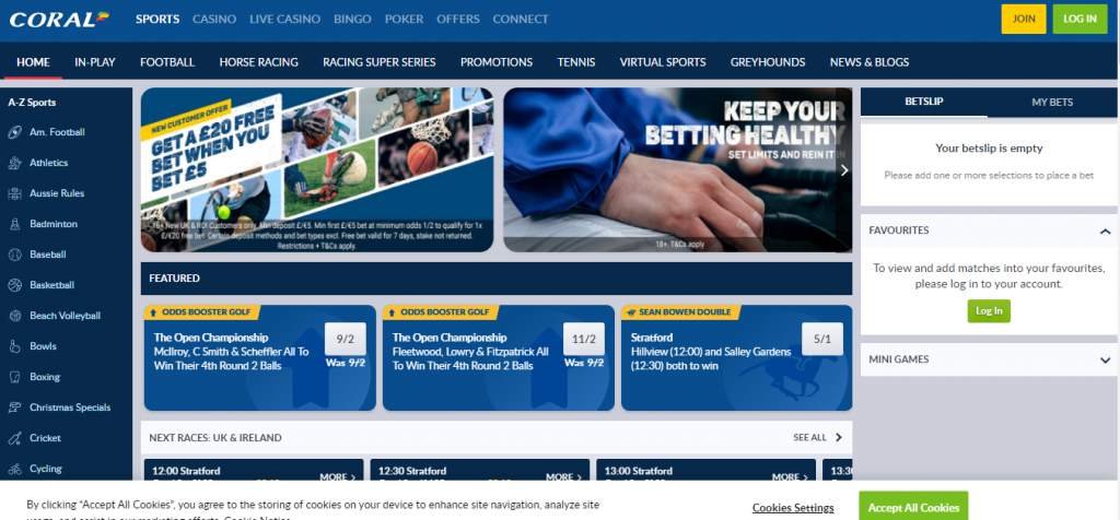 БК Coral появилась в 1926 году. Фирма считается одной из крупнейших в Великобритании. Букмекер работает через официальный сайт и пункты приема ставок. Последних насчитывается более 1000. Акцент оператор делает на жителей Европы. Много бонусов фирма предлагает для скачек. Варианты поощрения есть для новичков и более опытных клиентов.