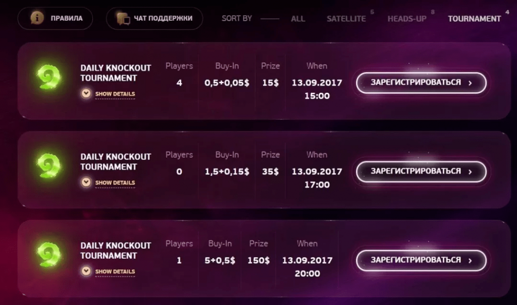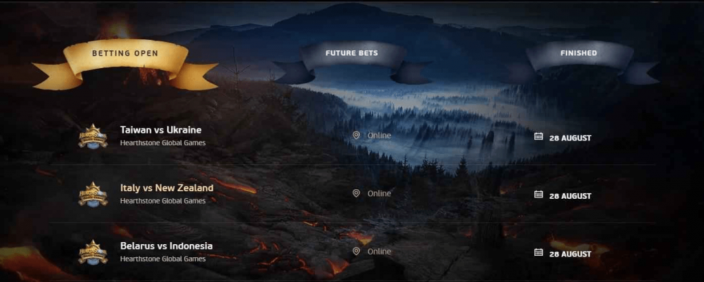 Линия включала мировые турниры по покеру и другим карточным играм. Любители Hearthstone могли просматривать турниры: