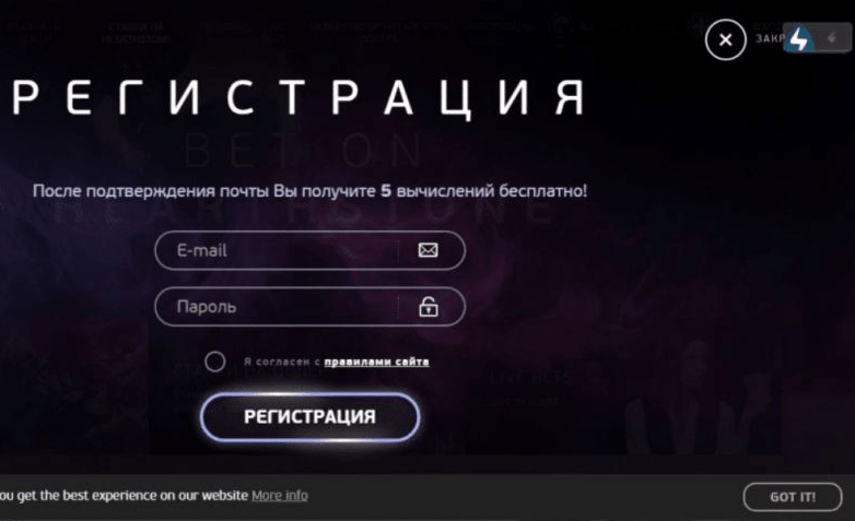 При регистрации игрок получал приветственный бонус – 5 расчетов на специальном калькуляторе .