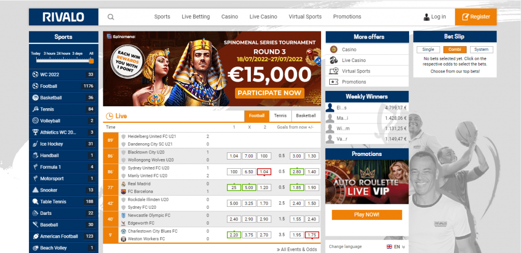 Линия Rivalo в основном содержит много игр популярных лиг. Такой вид подхода вполне обоснован. На ТОП-событиях и буем анализировать комиссию клуба.