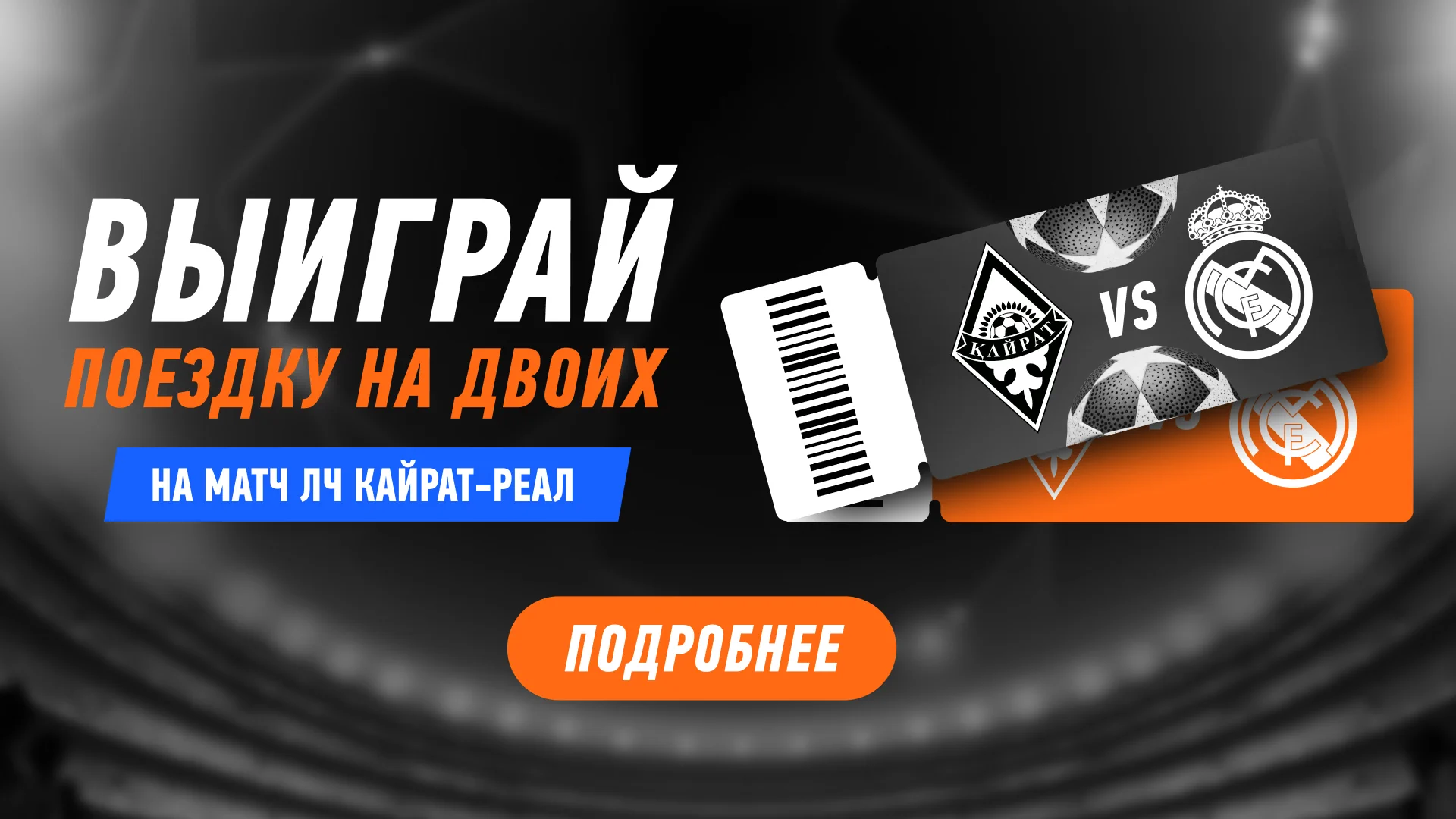 Главный приз – это поездка на двоих на матч ЛЧ Кайрат-Реал в Казахстан. Подробнее Winline запустил акцию для новых игроков!