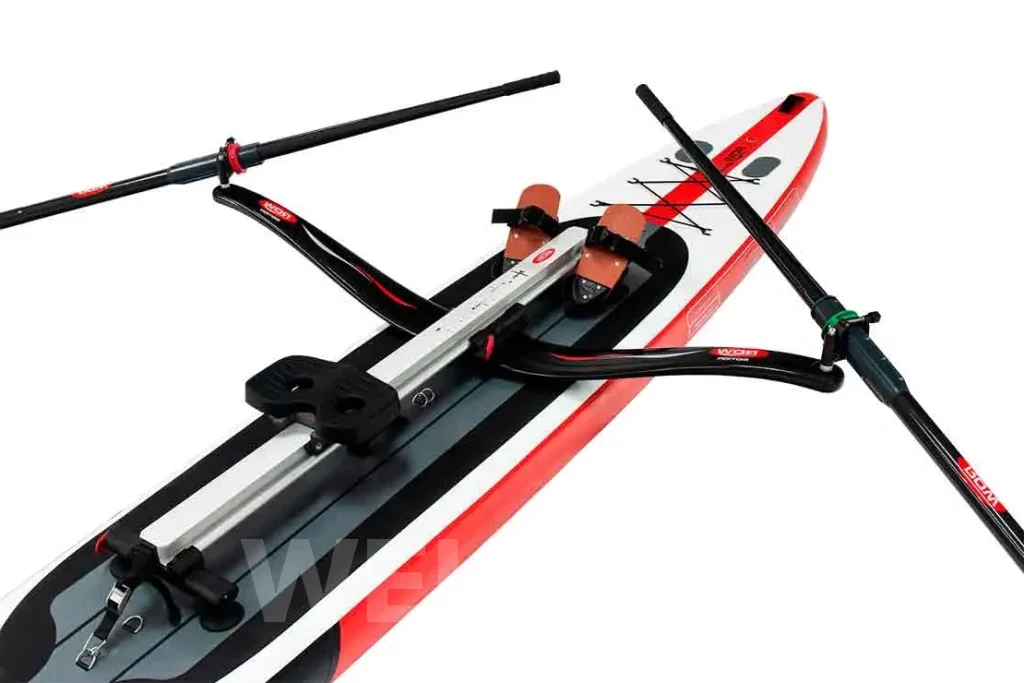 На международных соревнованиях весла окрашивают в национальные цвета. В жаркое время экипировка это майка и шорты, а в остальных случаях — спортивный комбинезон или костюм. Защитное снаряжение включает специальные очки и кепки, спасательные жилеты и подушки.
