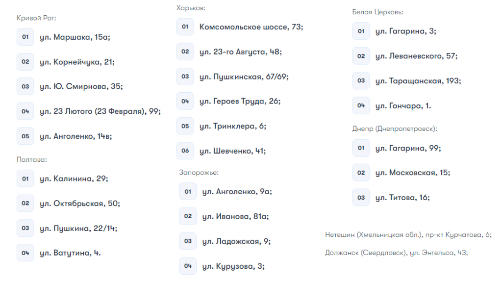 Большую часть купонов игроки оформляют через официальный сайт. Сеть пунктов приема ставок 1xBet в Украине развивалась относительно слабо. Всего было доступно около 30 ППС. Причем на разных ресурсах список адресов БК отличается.