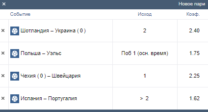 - Котировка ставки «результата без ничьи» – больше 2,00.