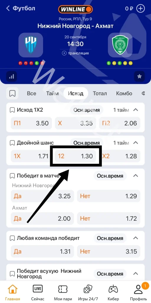 Внимание! Лучше не выбирать матч, где у фаворита низкая мотивация или проблемы с составом. Для ставок на 12 нужны спортивные события с минимальной вероятностью ничейного исхода.