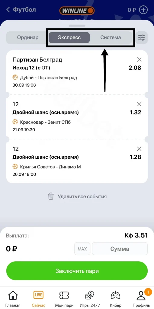 Допустим, клиент добавил в купон 3 матча и выбрал систему 2/3. Сумма ставки — 900 рублей. Букмекер сформирует 3 экспресса, выделив по 300 рублей на каждую комбинацию из 2 прогнозов.
