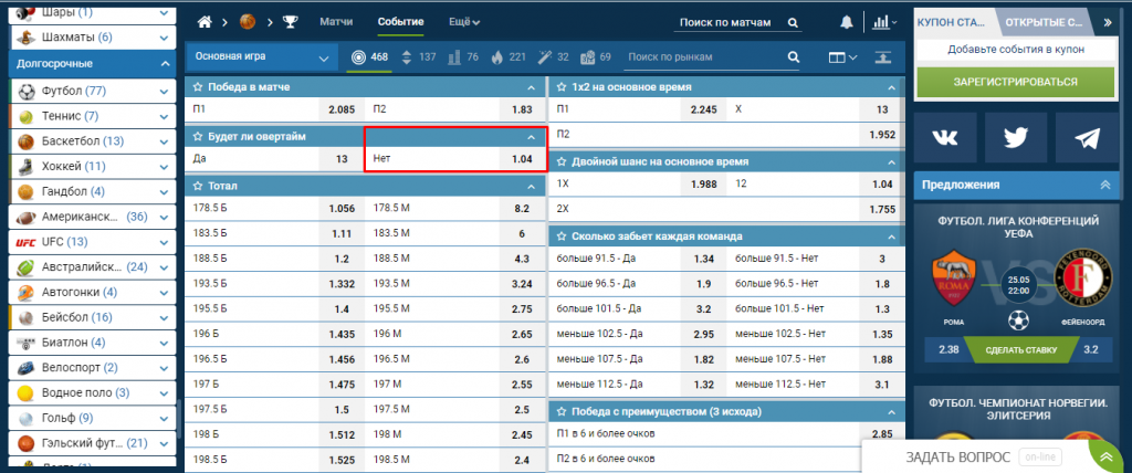 Двойной шанс 12 в ставках на баскетбол заменяют исходом «Нет» последнего рынка. Но коэффициенты низкие.