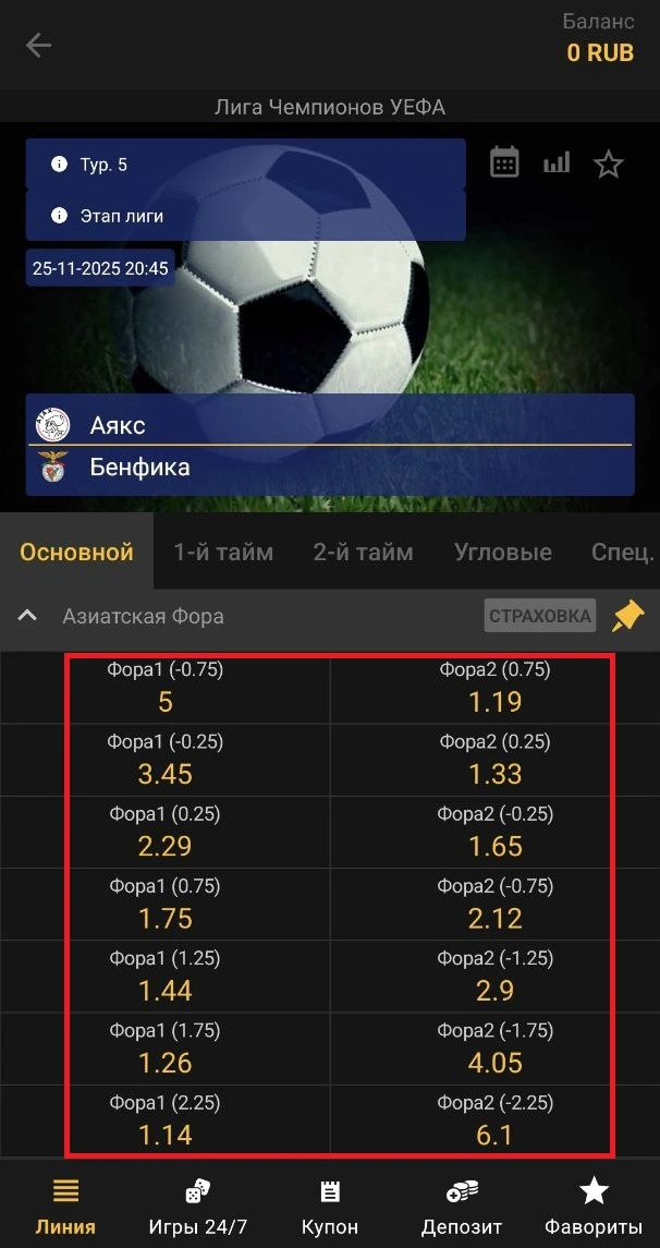 Фора – ставка на победу команды в матче с заданным преимуществом. Расчет результата строится в зависимости от типа гандикапа. Ключевые различия между классической (европейской) и азиатской форами: