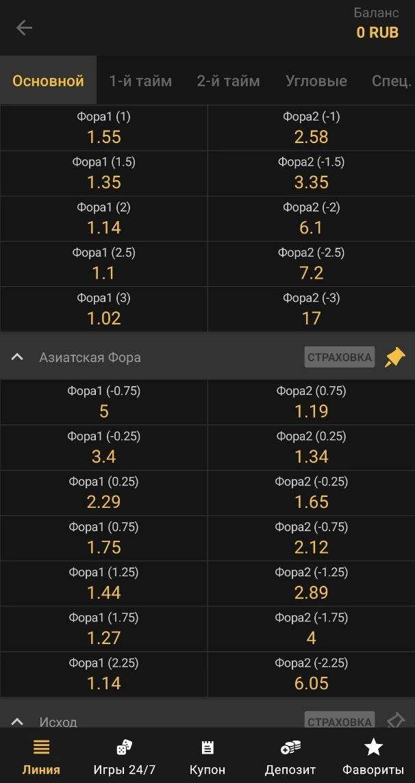Первая половина от суммы ставки уйдет на Ф(2.0), а вторая — на Ф(2.50). То есть, пари 500 рублей на Ф(2.25) значит, что игрок ставит по 250 рублей на победу команды с учетом европейских фор 2.0 и 2.5. Рассчитываться такая ставка будет как 2 отдельных прогноза.