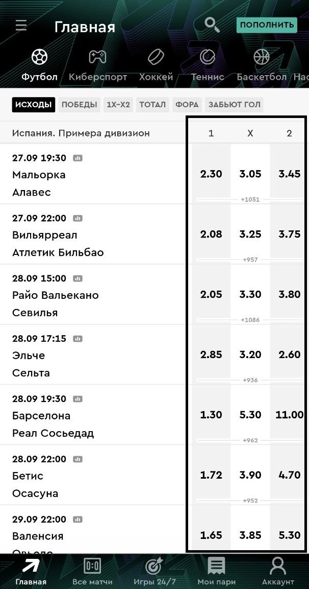 | Низкая маржа в сравнении с экзотическими рынками того же матча | В теории просчитать и прикинуть тотал проще, чем подобрать правильный исход |