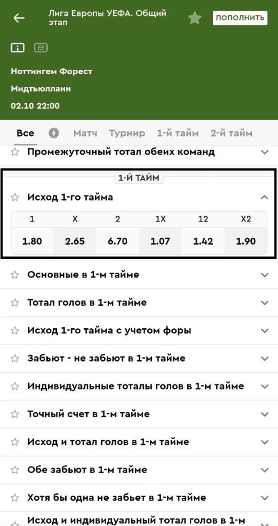 Чтобы сделать правильный выбор, игроку необходимо учесть прошлые выступления команд, посмотреть статистику взятия ворот. Некоторые клубы «разыгрываются» во вторые 45 минут. Другие предпочитают выкладываться в первый тайм, а во второй — сушат игру.