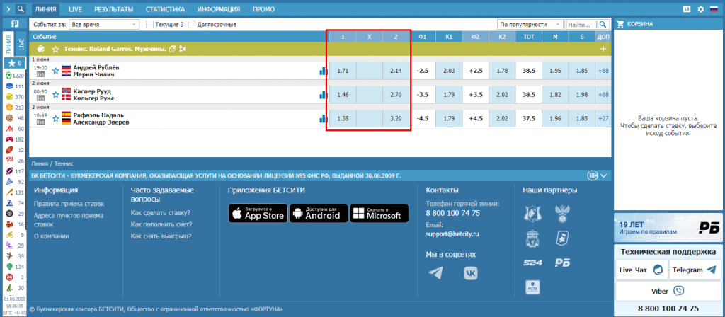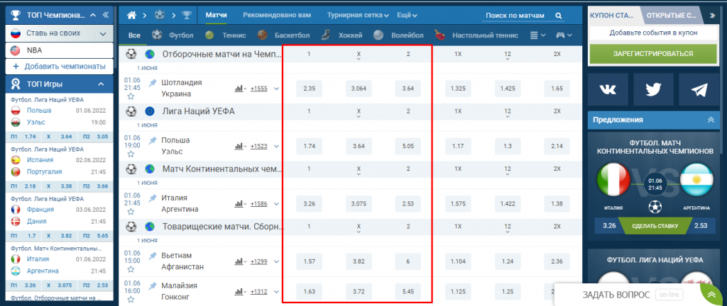 - Представленность во всех БК. Экзотические маркеты (тотал или фора на минуту, появление медиков на поле) добавляют топовые конторы. Небольшие букмекеры вводить такие результаты не могут. Основной рынок есть у каждой компании.