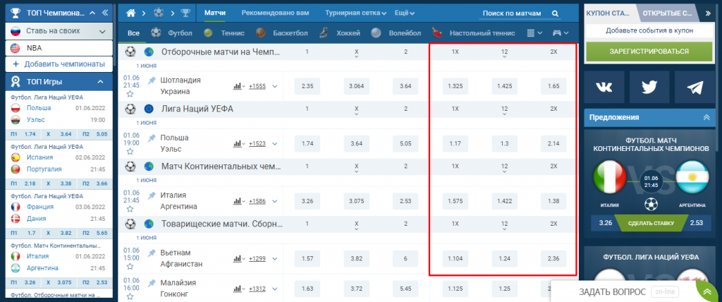 Вероятность выигрыша пари выше, но коэффициенты меньше. Однако в некоторых случаях можно использовать и эти варианты игры.