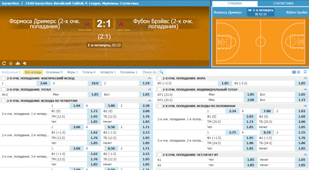 Например, на встречу Орландо – Детройт в прематче российские букмекеры установили ТБ 195.5 с коэффициентом 1.76. Но игра оказалась настолько насыщенной, что уже после первой четверти появился новый прогноз на ТМ 207.5 с множителем 2.02. То есть образовался «коридор» в 10 очков. Любая ставка на ТБ или ТМ, которая попадает в этот диапазон, будет выигрышной.