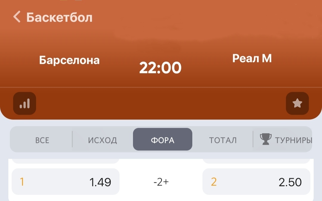 Игра закончилась со счетом 71:69 в пользу «Барселоны». После вычета форы получается 69:69. Ничейный исход означает возврат ставки.