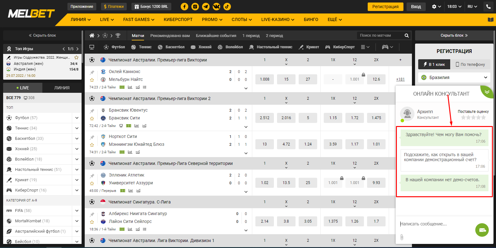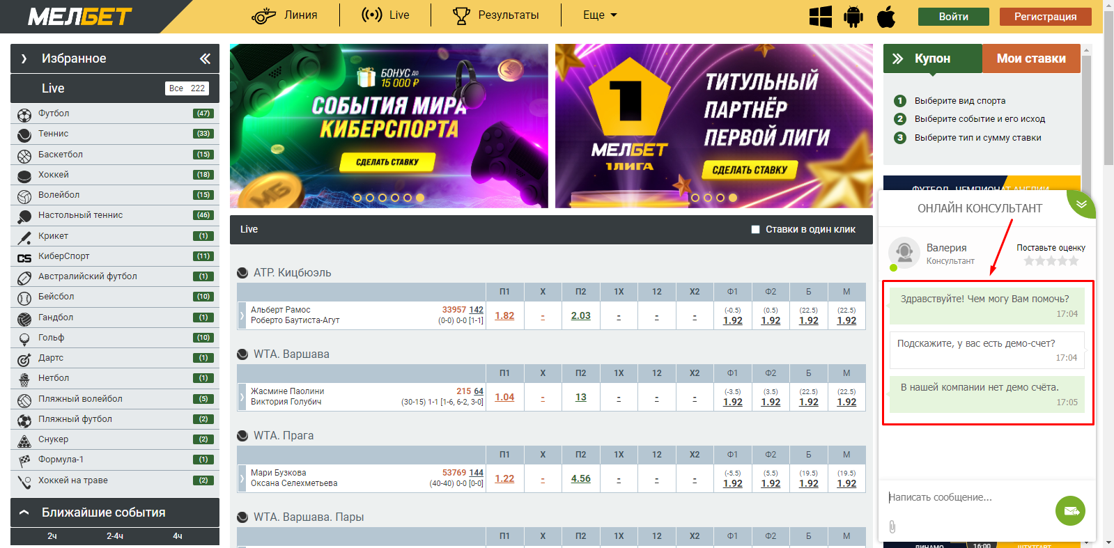 Демо счет Мелбет