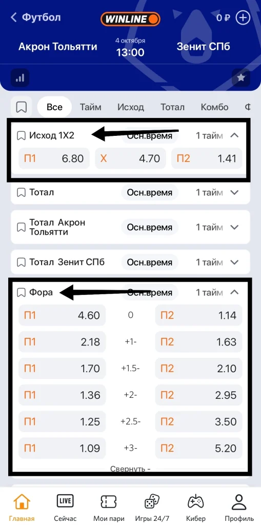 Разница в способе расчета. Пари Ф(0.5) может выиграть или проиграть, а азиатский гандикап— это четвертная дробь, которая объединяет 2 европейских прогноза. Вариант Ф(0.25) состоит из Ф(0) и Ф(0.5). А еще есть ставка Ф(0.75), в которую включены форы 0.5 и 1.0.