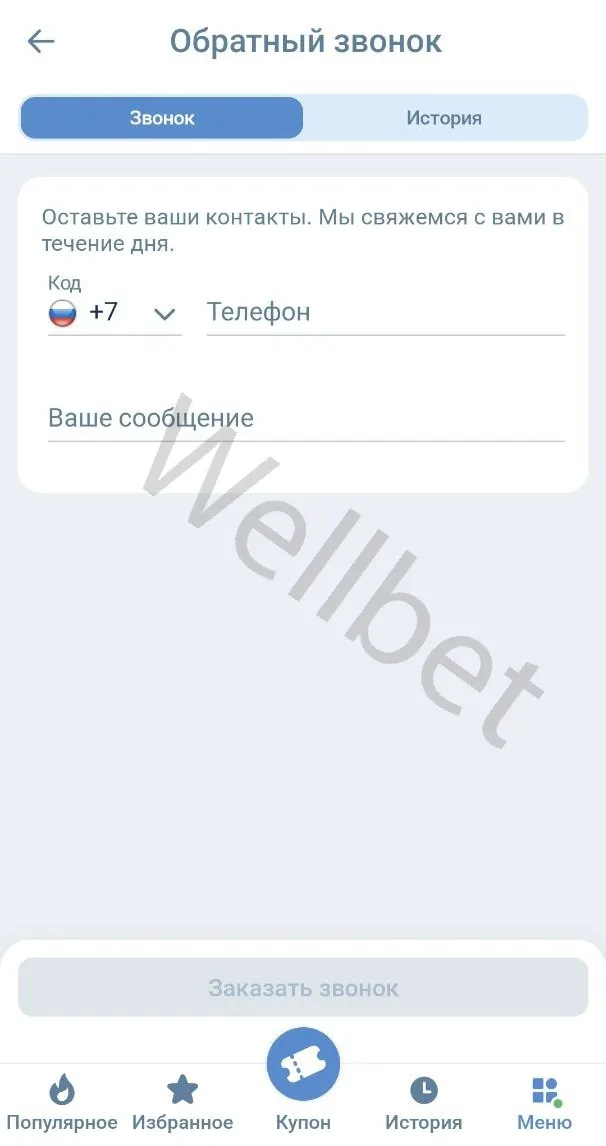 Букмекерская контора 1xBet предоставляет возможность попросить связи с оператором БК. Все версии приложения на iOS и Андроид предлагают функцию обратного звонка. Клиент указывает номер телефона и имя, чтобы сотрудники могли связаться с ним для решения вопроса.