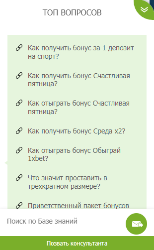 Онлайн-чат с оператором техподдержки 1xBet доступен в разделе приложения или сайта букмекера. Первоначально пользователю предлагают ответы на популярные вопросы. Но если требуется обратиться к специалисту, сотрудник 1xBet ответит клиенту через несколько минут.