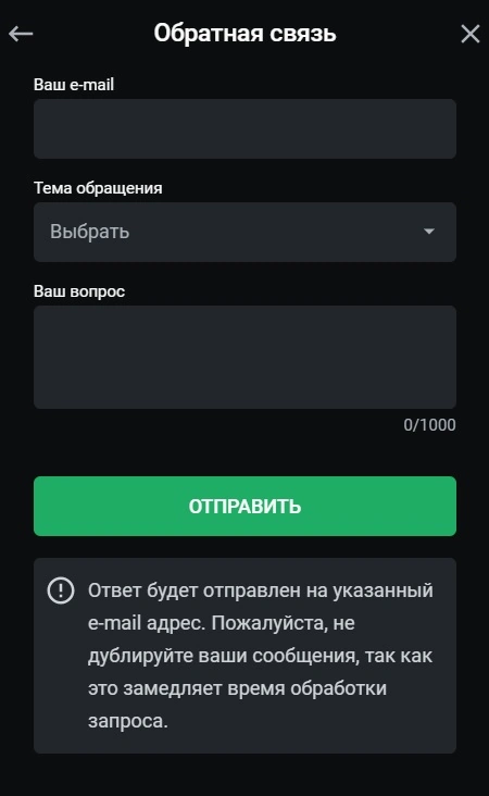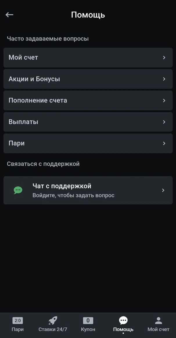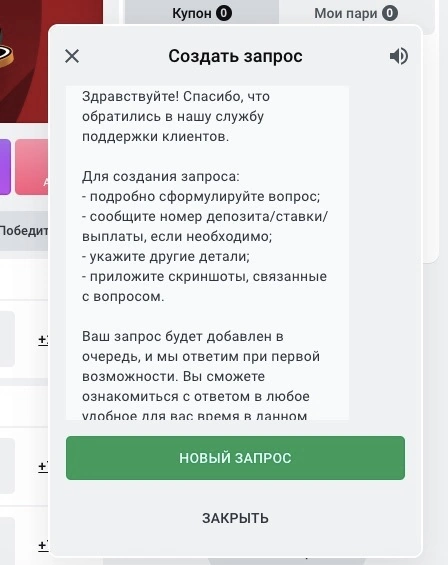 Здесь можно задать только общие вопросы о правилах букмекера, коэффициентах, действующих акциях и пр. Если есть проблема с выводом денег или заблокирован аккаунт, необходимо обращаться в чат поддержки или на электронную почту.