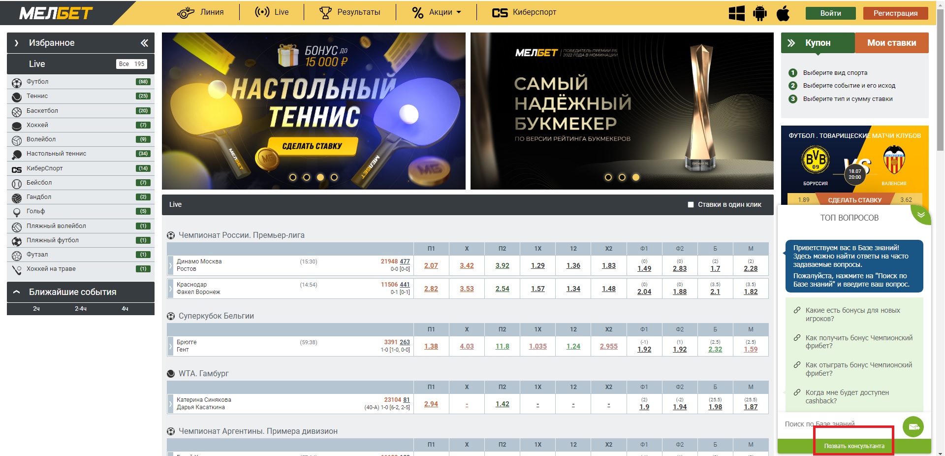 При помощи чата в лайв-режиме можно самостоятельно найти информацию по интересующей проблеме или задать вопрос в сообщении консультанту. Специалисты легальной БК Мелбет развернули интерактивную базу знаний, где уже находятся ответы на список распространенных вопросов.