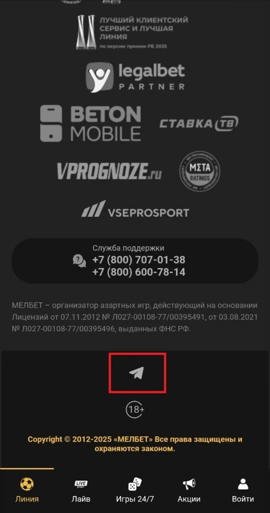 - Telegram – t.me/melbet_official_russia;