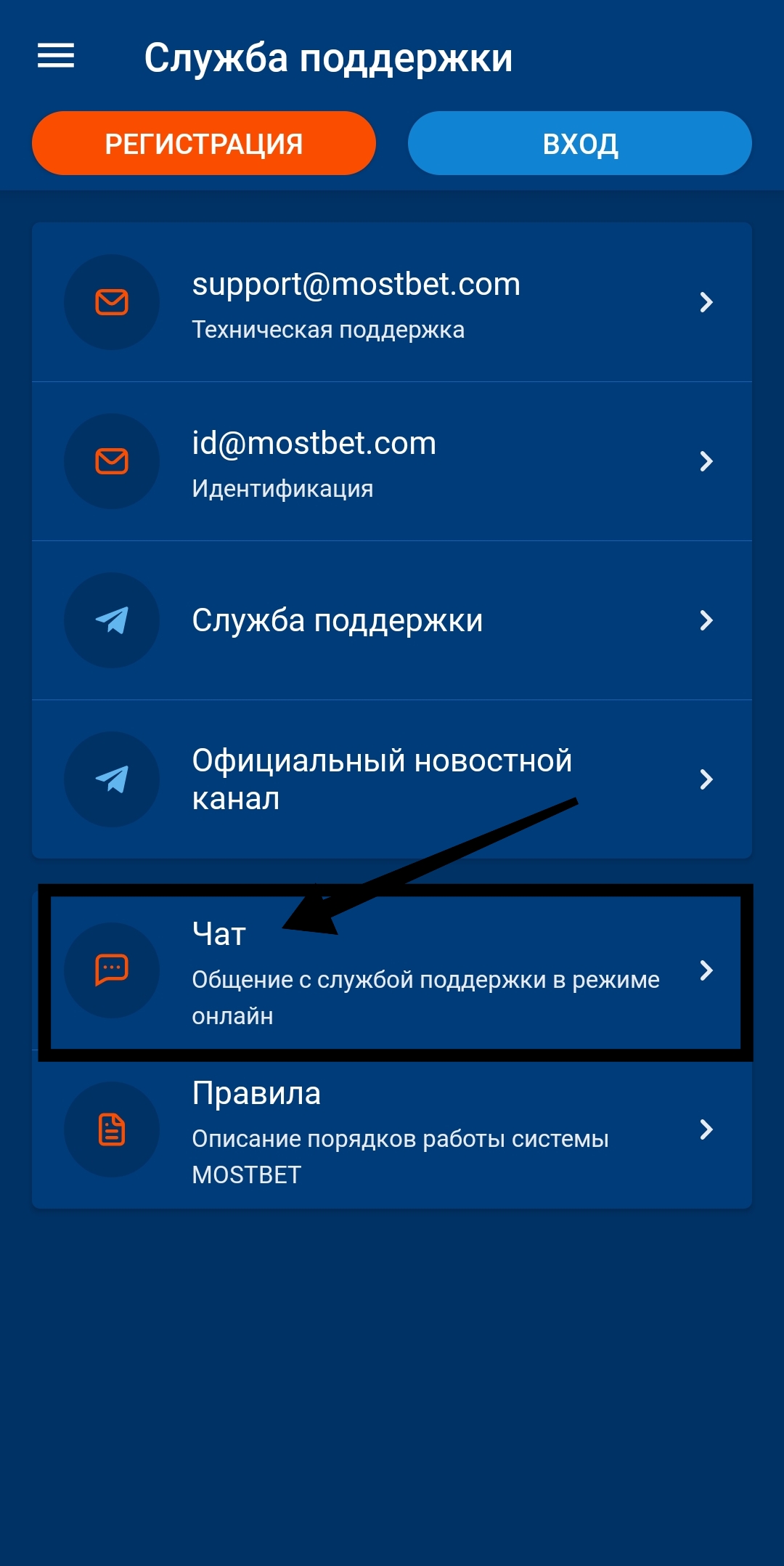 Онлайн-чат Мостбет