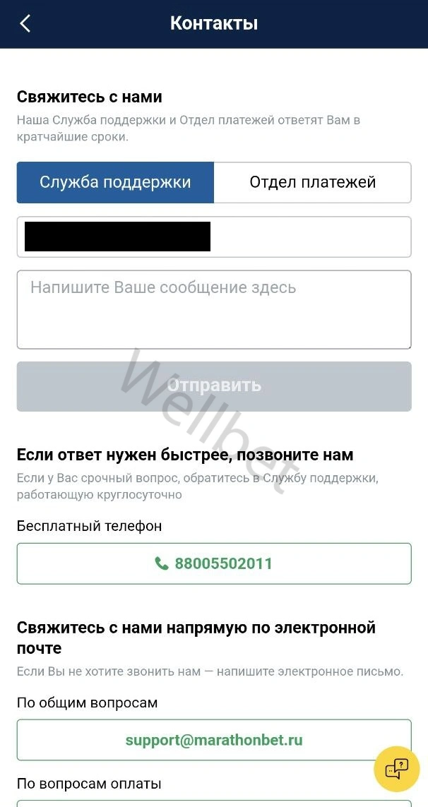 Другие способы связи со службой поддержки БК
