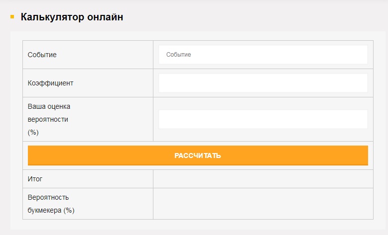 Опробовать калькулятор валуйных ставок онлайн можно на нашем сайте. Он поможет провести оценку вероятностей выигрыша после основного расчета.