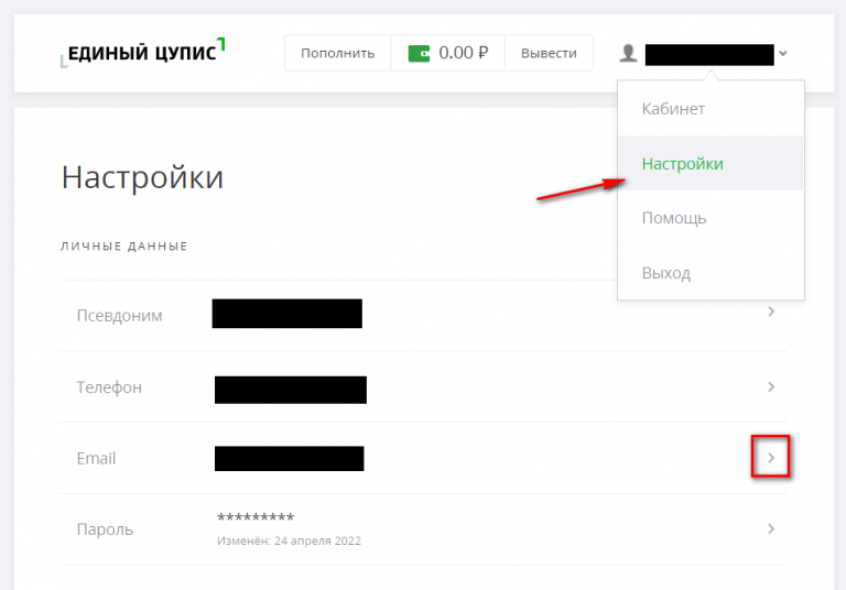 Напротив текущих сведений будет указана стрелка. Нажатие на нее позволяет обновить информацию. Аналогичным образом в CUPIS можно изменять псевдоним и пароль.
