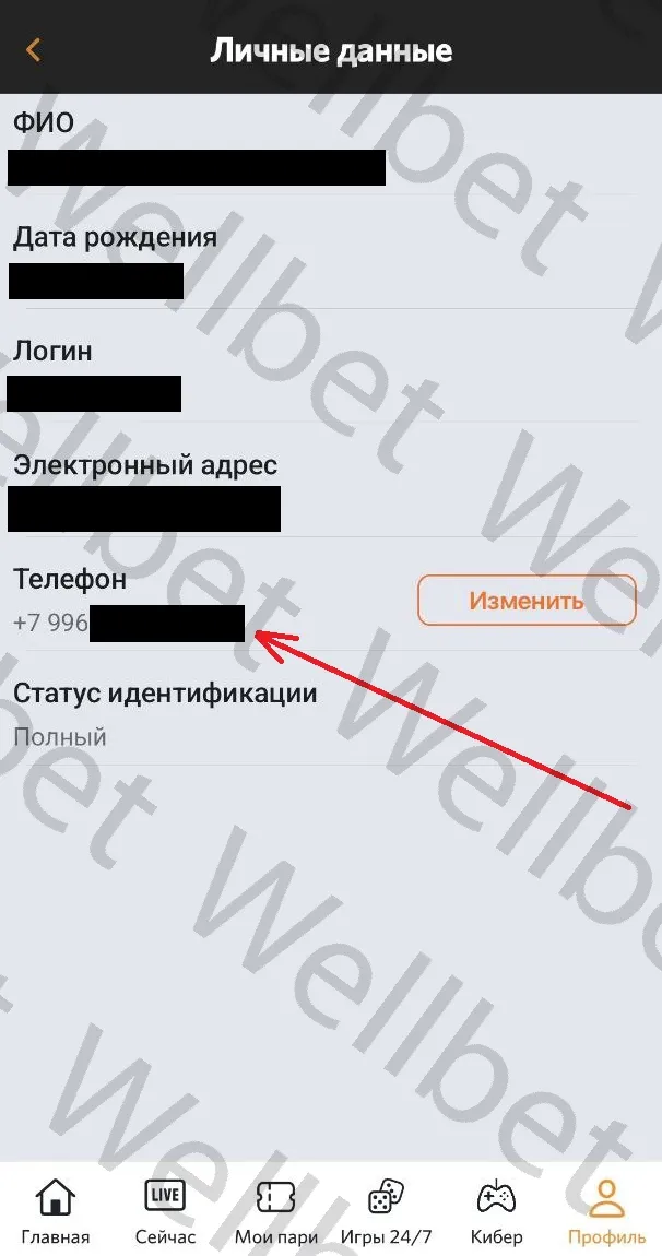 Самостоятельно поменять номер через сайт или приложение Winline нельзя. В «Личном кабинете» подобные опции не предусмотрены.