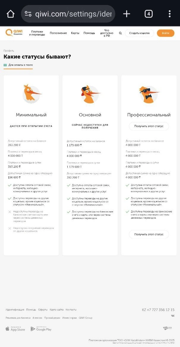У игрока могут возникнуть проблемы при получении выигрышей. Возможности кошелька QIWI со статусом «Минимальный» ограничены. Пользователь не может:
