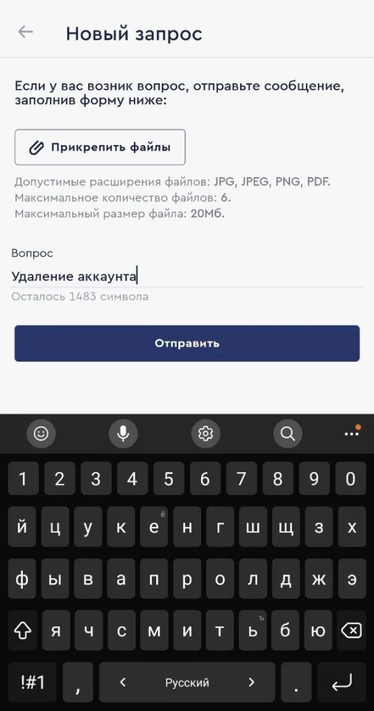 - Изложите суть обращения, написав об удалении аккаунта. Сообщите причину деактивации учетной записи, контактный номер телефона и отправьте сообщение.