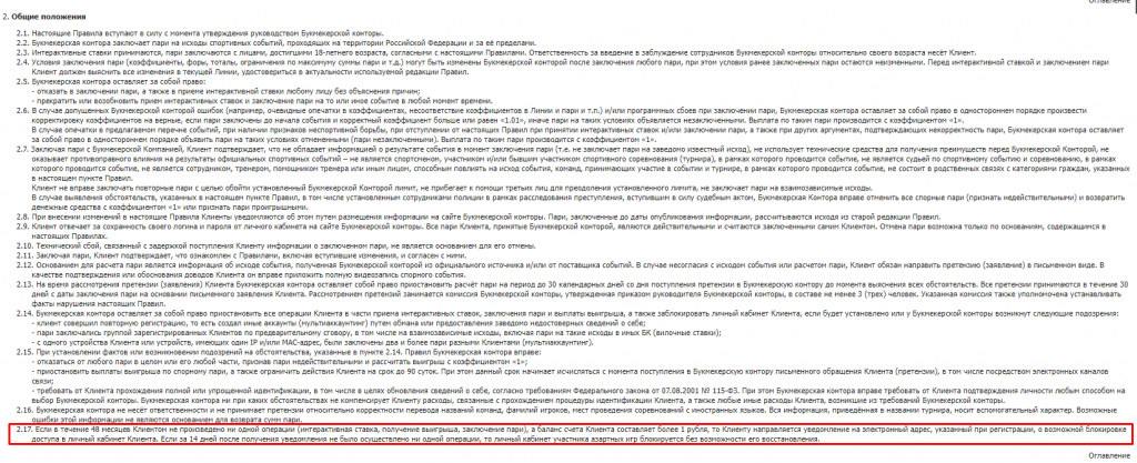 За две недели до истечения 4-летнего срока на электронную почту игрока придет предупреждение о возможной блокировке счета. Если за это время беттер не предпринимает никаких действий, то счет будет полностью заблокирован.
