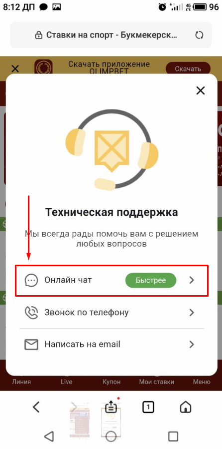 Как удалить аккаунт в «Олимп Бет» на мобильном сайте