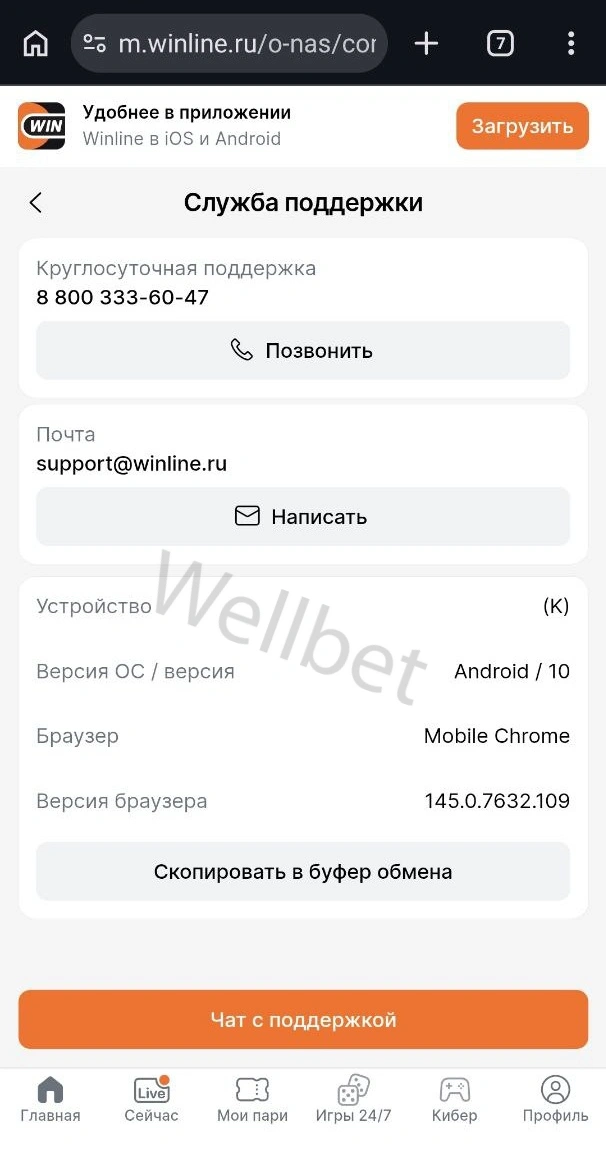 Для помощи с удалением аккаунта Winline звоните на их горячую линию.