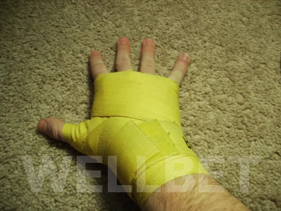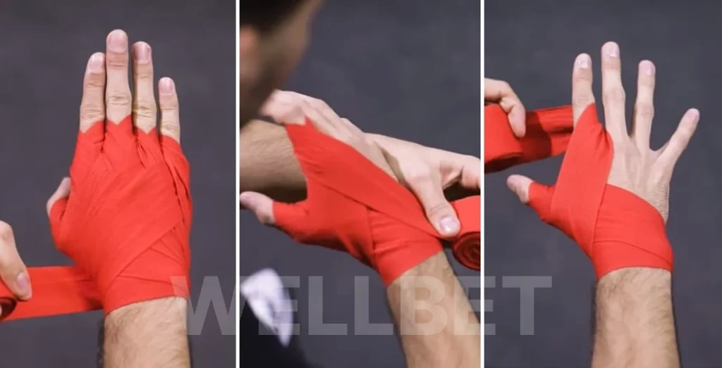 При травме кисти небольшой участок ленты складывают втрое и накладывают на костяшки с тыльной стороны ладони. Обводят бинт вокруг ладони, чтобы зафиксировать защиту. Далее обматывают пальцы обычным способом.