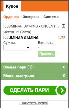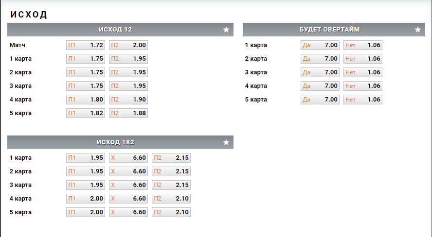 | Ставка | Матч | Карта Дота 2 | Карта CS:GO |