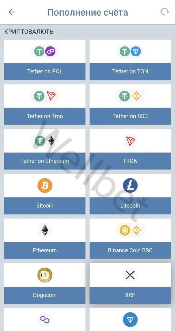 - Большой выбор. Букмекер предлагает пополнять счет, используя альткоины 42 видов.