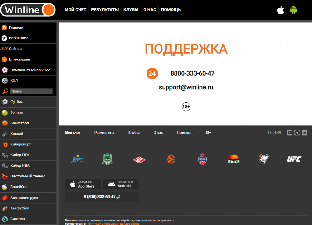 Российская БК предлагает клиентам ПО на Android и iOS для установки на смартфоны и планшеты. Программы дают игрокам доступ к линии БК, позволяют делать ставки на спорт и выводить деньги со счета. Контакты службы техподдержки можно найти в разделе «Помощь» мобильного приложения Winline на Андроид. Клиенты БК Winline для связи могут использовать телефон, live-chat и электронную почту.