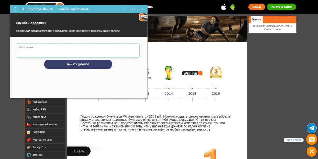 Специалисты компании круглосуточно находятся на живой связи с клиентами по многоканальному телефону. Но иногда ожидание получения ответа продолжается несколько минут. Чтобы быстрее решить свои проблемы, пользователю нужно зайти в онлайн-чат на страницу БК Winline.