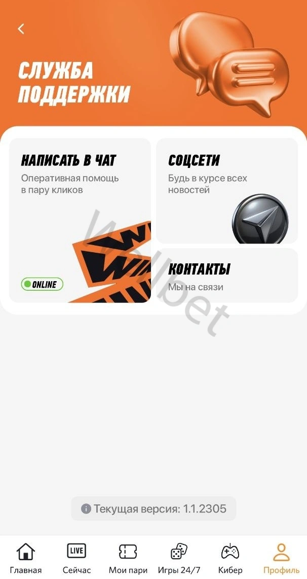 Помощь службы поддержки Winline